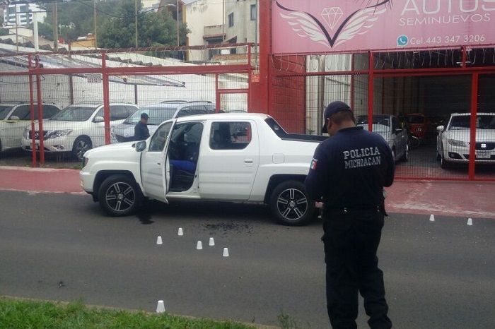 Jorge Manzo/ La Voz de Michoacán Morelia, Michoacán. Esta tarde se registraron detonaciones de arma de fuego al sur de Morelia, en Camelinas. Cerca del entronque de Camelinas con la calle Juan Sebastián Bach fue el escenario del tiroteo que dejó al menos un muerto. La circulación está semibloqueada en Camelinas, en el sentido del Zoológico de Morelia a Plaza Camelinas. La persona asesinada quedó al interior de una camioneta Honda blanca, afuera de un lote autos, casi frente al Centro de Convenciones. Los testigos reportaron la balacera, tras lo cual acudieron al lugar elementos de la Policía Michoacán, así como personal de auxilio. No se ha identificado el cuerpo del ahora occiso, sólo se sabe que vestía un pantalón azul marino y una chamarra negra. Fue alrededor de las 19: 30 horas cuando tuvo lugar el tiroteo. En el lugar quedaron alrededor de 20 casquillos. Se recomienda tomar sus precauciones si va para la zona, ya que desde antes del Zoológico el tráfico es pesado. Es de recordar que el pasado 18 de junio mataron a un hombre en el centro de Morelia, frente a la Facultad de Derecho de la UMSNH.