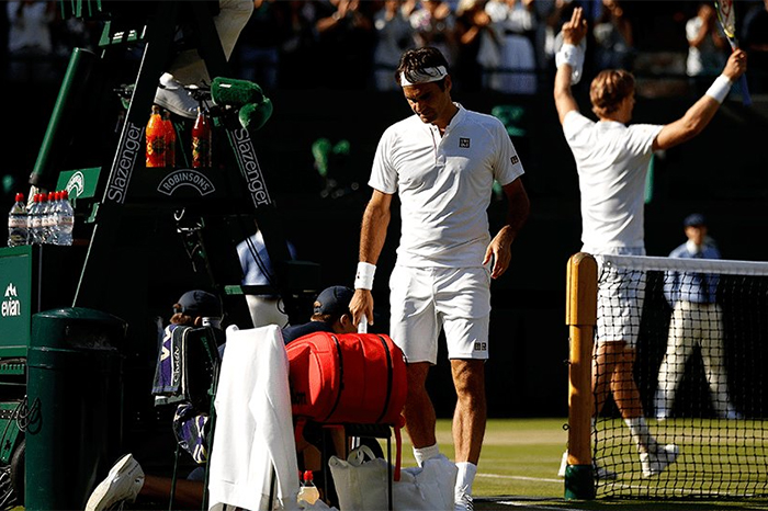 Notimex / La Voz de Michoacán Londres. El tenista suizo Roger Federer cayó en los cuartos de final de Wimbledon ante el sudafricano Kevin Anderson, por lo que no podrá defender el título que consiguió el año pasado. Además de no obtener la victoria, "Su Majestad" también cortó su racha de 85 juegos sin perder su saque. El duelo se lo llevó el sudafricano por parciales de 6-2, 7(7)-6(5), 5-7, 4-6 y 11-13. Por su parte, el serbio Novak Djokovic mantiene la ilusión de volver a los primeros planos del tenis mundial, ya que venció al japonés Kei Nishikori y se calificó a las semifinales de Wimbledon, certamen que ya conquistó en tres ocasiones. Pese a que es la primera vez que "The Djoker" llega al Grand Slam sin haber ganado un campeonato durante el año, eso no le impidió adjudicarse el triunfo ante el nipón, con un marcador contundente de 6-3, 3-6, 6-2 y 6-2.