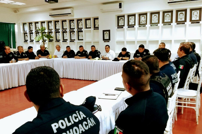 Fabian Alanis/ La Voz de Michoacán Lázaro Cárdenas, Michoacán. En una reunión de mandos de seguridad en el estado se acordó reforzar los operativos en las regiones de Lázaro Cárdenas, Uruapan, Apatzingán y Coalcomán. Por instrucción del titular de la Secretaría de Seguridad Pública (SSP), Juan Bernardo Corona Martínez, el subsecretario Carlos Gómez Arrieta encabezó la mesa de trabajo con directores y comandantes, quienes determinaron medidas para fortalecer la estrategia operativa. En este encuentro con los 21 mandos locales y los cuatro regionales, Gómez Arrieta, los exhortó a trabajar de manera organizada para mejorar las acciones operativas que garanticen el orden público y la seguridad de la población de estos municipios; así como a trabajar de forma coordinada con los tres órdenes de gobierno para tener una reacción inmediata ante alguna emergencia, e inhibir acciones delictivas. Durante la reunión de estrategia se acordó trabajar con mayor énfasis en zonas que así lo requieran, a la par de mantener operativos permanentes con la instalación de puestos de control y filtros de revisión de documentación a personas y vehículos, además de despolarizado de unidades en éstas cuatro regiones del estado. Con la mejora de estrategias operativas y el trabajo coordinado, la SSP trabaja para blindar las regiones de la entidad y así cerrar el paso a la delincuencia organizada.