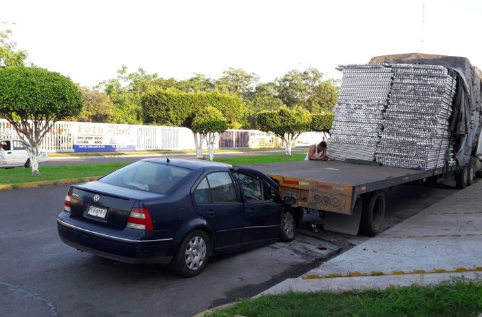 Alejandro Serrano / La Voz de Michoacán Lázaro Cárdenas, Michoacán. La mañana de este viernes, el conductor de un vehículo particular resultó con múltiples lesiones al impactar por alcance contra el remolque de un tráiler estacionado, quedando incrustado su automotor debajo de la pesada unidad. El aparatoso accidente ocurrió cerca de las 08:00 horas, sobre la avenida Rector Hidalgo frente a la unidad deportiva ubicada en la colonia Centro de esta ciudad de Lázaro Cárdenas, hasta donde se movilizaron agentes de la Policía Michoacán así como los socorristas de Protección Civil Municipal. En el sitio mención se pudo observar que el vehículo en cuestión es un Jetta de color negro con placas PFN-814-Y de Michoacán, mismo que colisionó contra un tractocamión de color blanco, con matrícula 104VY5, cargado con panel W para la construcción, mismo que estaba estacionado.