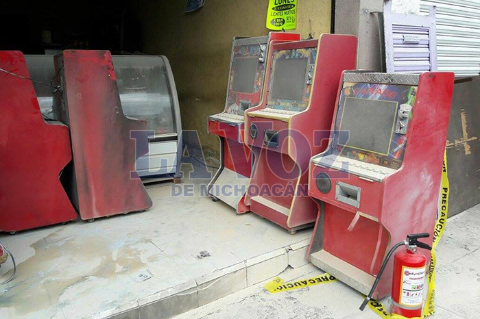 Alejandro Serrano / La Voz de Michoacán Zamora, Michoacán. Un solitario sujeto lanzó una bomba molotov contra máquinas traga monedas que estaban por fuera de una pastelería ubicada en inmediaciones del mercado Hidalgo, ocasionando un incendio que también lesionó al dueño del comercio. La emergencia fue reportada minutos antes de las 14:00 horas, cuando varias llamadas se alertaron a los números de emergencia, donde señalando que dentro del negocio denominado “Pastelería Monarca" se estaban quemando varias máquinas traga monedas y pedían el apoyo de bomberos y una ambulancia. De inmediato se movilizó el personal de Protección Civil y Bomberos Municipales, hasta el sitio en mención ubicado sobre la Avenida 5 de Mayo Sur, en la colonia Jardines de Catedral. A su arribo los bomberos controlaron el siniestro y el área fue resguardada por elementos de la Policía Michoacán, quienes confirmaron que siete maquinitas estaban dañadas, así como parte del negocio. De igual forma los socorristas auxiliaron al encargado del comercio de nombre Gerardo M., L., ya que presentaba quemaduras leves.
