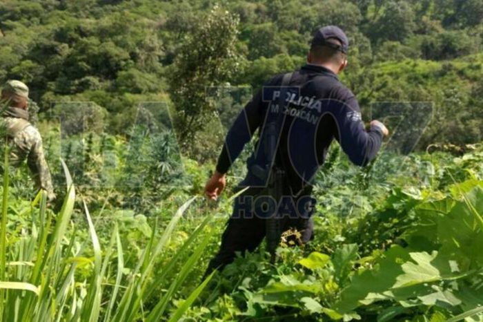 Alejandro Serrano/La Voz de Michoacán Madero, Michoacán. Un total de nueve plantíos de marihuana fueron localizados y destruidos en un reciente operativo hecho por los elementos del Ejército Mexicano y por los agentes de la Policía Michoacán. Las autoridades competentes reportaron la acción y detallaron que ésta fue después de patrullajes pie-tierra en las inmediaciones de la comunidad de San José de Las Cidras. Los sembradíos estaban ocultos entre la vegetación y eran varios predios en los que había plantadas hierbas de “mota”. En global fueron seis mil 430 metros cuadrados de plantíos. Las matas de marihuana tenían desde 60 centímetros hasta más de un metro de altura. Todo fue eliminado mediante el método de mano de obra e incineración. Es importante mencionar que con lo anterior en los últimos siete días los militares y los policías han encontrado y destruido 16 sembradíos del enervante antes citado.