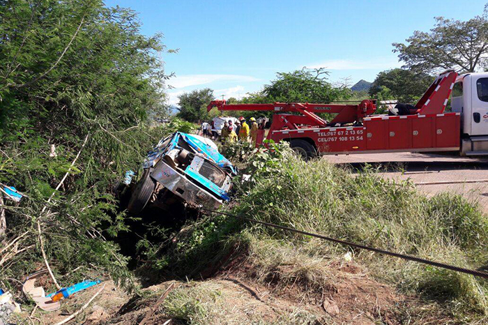 Alejandro Serrano/La Voz de Michoacán San Lucas, Michoacán. El copiloto de una pipa perdió la existencia luego de que ésta volcara en la carretera federal Huetamo – Altamirano en el kilómetro 224. La víctima mortal del accidente es Pedro R., de 38 años de edad con domicilio en Chacamarito, Guerrero. De acuerdo con datos obtenidos por este medio, la pipa de gas LP color azul y blanco con placas de circulacion HC 74 -039 que era conducida por Jaime C. de 32 años con domicilio conocido en Pungarabato Estado de Guerrero, sufrió una ponchadura de neumático que le hizo salirse de control. La unidad se volcó fuera de la cinta asfáltica y causó el deceso inmediato de Pedro R. Paramédicos de Protección Civil auxiliado a Jaime C. de 32 años y lo llevaron a una clínica a Huetamo. El Ministerio Público tomó conocimiento del asunto y se hizo cargo del cadáver.