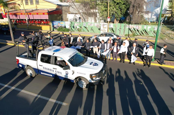 Redacción / La Voz de Michoacán Morelia, Michoacán. La mañana de este viernes arrancó el operativo de vigilancia por el Buen Fin, con un despliegue de 500 elementos que resguardarán establecimientos y plazas comerciales en Morelia y 13 regiones de la entidad, a fin de evitar ilícitos. Las acciones para brindar seguridad a la ciudadanía, del 17 al 20 de noviembre, las llevan a cabo, en conjunto, la Secretaría de Seguridad Pública, la Fiscalía General del Estado de Michoacán (FGE) y la Secretaría de Gobierno del estado. El banderazo de arranque fue encabezado por el secretario de Gobierno, Elías Ibarra Torres y el subsecretario de Operación Policial, José Ortega Silva, -en representación del secretario de Seguridad Pública, José Alfredo Ortega Reyes-, además estuvo presente el coordinador General de la Policía Ministerial de la FGE, Julio Meza Gaona, donde más de 500 agentes de la Guardia Civil y Fiscalía llevarán a cabo recorridos a pie tierra y labores de proximidad social en lugares mencionados de la capital michoacana. En la ciudad de Morelia, el despliegue policial abarca las principales plazas comerciales como Escala La Huerta y Andador, Paseo Altozano, Fiesta y Prados Camelinas, así como en Espacio Las Américas y la zona financiera, ubicada al sur de la ciudad; además de las tiendas de autoservicio como Home Depot y Walmart Mil Cumbres; Bodega Aurrera y Soriana Torreón Nuevo, entre otros. Las acciones se efectúan de igual manera en las distintas regiones de la entidad, para brindar una atención integral a la sociedad y responder de manera pronta y oportuna ante cualquier emergencia. Se pone al servicio de la población las líneas 911 Emergencias y 089 Denuncia Anónima para reportar cualquier actividad ilícita.