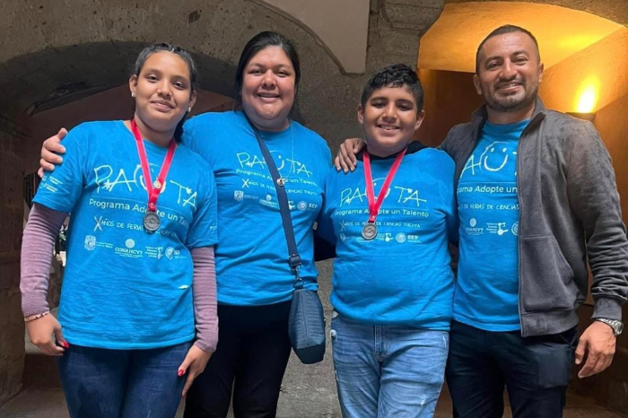 Redacción / La Voz de Michoacán Morelia, Michoacán. La secretaria de Educación, Gabriela Molina Aguilar, felicita a alumnas y alumnos de Tuzantla, quienes lograron destacarse a nivel nacional, al ser seleccionados entre los cinco proyectos más detallados de la Feria Nacional de Ciencias PAUTA, en el área de ciencias exactas, mismos que se presentan ante la comunidad científica y empresarial que los evalúan. “Es un gusto saber que el trabajo de las y los maestros en las aulas da frutos; avanza la segunda semana del ciclo escolar 2024-2025 con actividad en más de 11 mil planteles en el estado, lo que significa una infinidad de oportunidades para promover y difundir la investigación científica”, comentó la titular de la Secretaría de Educación del Estado. Bajo la orientación del maestro Edgar López García, los alumnos Sheila López y Jared Alexander Moreno también recibieron el segundo lugar por parte de la fundación Robert Bosch, en el marco de dicha feria, que tiene participantes de Chiapas, Ciudad de México, Michoacán y Morelos, estados donde el Programa Adopta un Talento (PAUTA), del Instituto de Ciencias Nucleares de la UNAM, tiene presencia. Las y los estudiantes fueron reconocidos por su innovador proyecto, Harina de Piedra, en una ceremonia realizada en el Colegio Nacional de México (Colmex), donde además, recibieron una mención honorífica de la Fundación IUANI por ser el mejor proyecto de inicio de divulgación. También, recibieron la medalla de los Premios Pauta, que los colocó entre los cinco proyectos con mayor puntaje en la categoría de educación primaria a nivel nacional. Este logro subraya la importancia de contar con docentes comprometidos que, al estar presentes en las aulas, impulsan el desarrollo y éxito de sus alumnos.