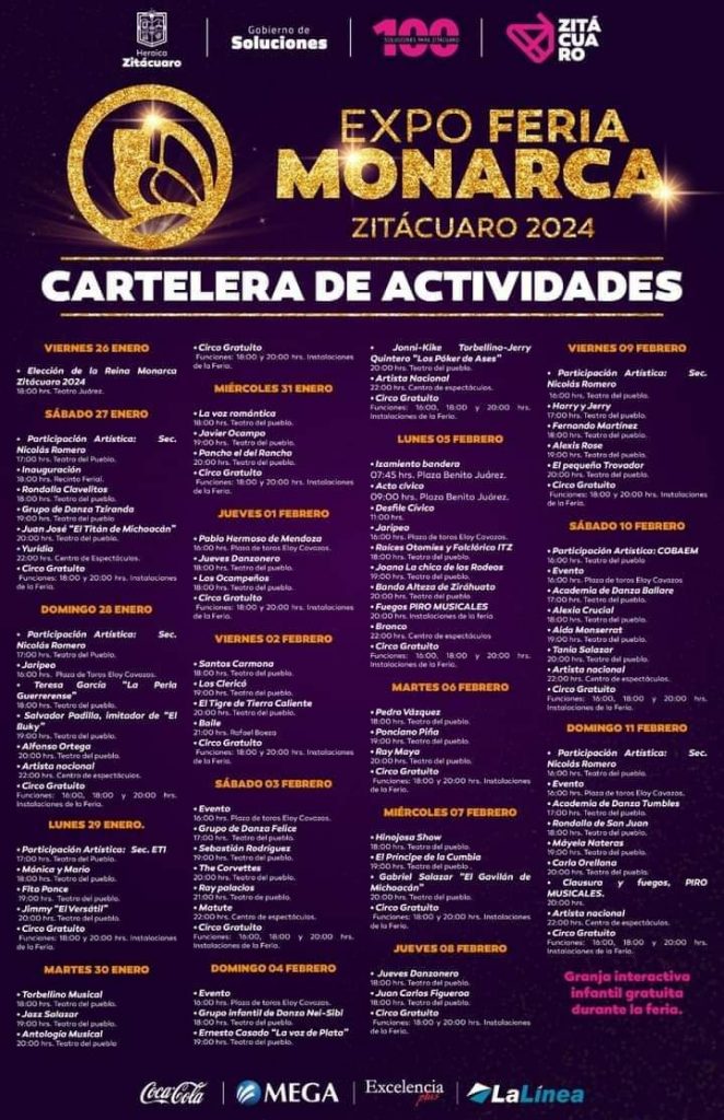 Zitácuaro, Michoacán. – La Feria de Zitácuaro, programada para el 27 de enero, regresa una vez más para ofrecer una experiencia única. Este evento anual tiene como objetivo proporcionar un ambiente familiar lleno de tradiciones, música y culturas propias de la región. La feria, que estará abierta hasta el 11 de febrero, brindando la oportunidad de sumergirse en la belleza del evento. Una de las actividades destacadas es la coronación de la Reina de Zitácuaro, la cual forma parte de un variado programa que incluye juegos mecánicos y de destreza, la venta de artesanías y la posibilidad de disfrutar de la rica gastronomía popular, que incluye delicias como carnitas, tamales y otros antojitos mexicanos elaborados por las expertas manos de cocineras tradicionales. Foto: Especial Dada la importancia de Zitácuaro como la principal región de la mariposa monarca, la feria no puede dejar de lado las exposiciones dedicadas a estos pequeños seres y su relevancia en el hábitat ecológico. Además, se llevarán a cabo charlas informativas que destacarán la importancia de proteger los ecosistemas necesarios para la supervivencia de estas mariposas. El evento también incluirá actividades cívicas conmemorativas del 5 de febrero. Se espera una afluencia significativa, superando la exitosa participación del año 2023. La comunidad local espera que este año sea nuevamente motivo de celebración y un impulso para la economía local a través del turismo.