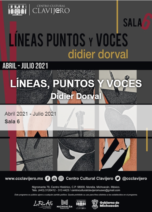 Redacción / La Voz de Michoacán Durante el mes de julio el Centro Cultural Clavijero nos ofrece grandes exposiciones clases magistrales, ciclos de cine, cursos, talleres y actividades artísticas a públicos específicos. El nuevo horario temporal por contingencia de la COVID-19 de este centro es de miércoles a sábado de 10:00 a 15:00 hrs. PIEDRA, PAPEL O REFLEJO Fecha: Mayo 2021 - Julio 2021 Sala: 7 La propuesta artística de Firlag se sitúa dentro del campo de los aspectos formales, incluyendo elementos como la fragmentación y la relación con el espacio. Asi es como concibe la meditación artística en convivencia con la confección y el reciclaje de la materia, para transformarla en materia prima de la creación: a partir del vidrio destrozado. Todo este MATERIAL se convierte una y otra vez en OTRA MATERIA. LÍNEA PUNTOS Y VOCES Fecha: Mayo 2021 - Julio 2021 Sala: 6 Didier Dorval nació en Paris, Francia en 1950. Muy joven, se apasiona por la música y las artes gráficas. En Paris, estudia fotografía y filosofía a los 19 años es asistente de Jean Dubuffet. El primer gran viaje. Líbano. Siria. Turquía. Se hace miembro del grupo del Centre d’Art de Lainville dirigido por Hugues Pissarro nieto de Camille. Asiste a los cursos de filosofía del Collège de France con Roland Barthes y Gilles Deleuze, participa en el proyecto de Censo Nacional de Riquezas de Francia. Proyecto dirigido por André Malraux. En el 2002 se instala en México y en Pátzcuaro, Michoacán, donde tiene su estudio y donde organiza conciertos de música clásica, así como otras actividades artísticas. Cuarta Muestra Estatal De Cortometraje Fecha: Mayo 2021 - Julio 2021 Sala:10 La muestra estatal de Cortometraje Contemporáneo 5C tiene como objetivo ofrecer un espacio alternativo de exhibición a los realizadores audiovisuales Michoacanos y generar aproximaciones a un público más amplio relacionado a estas formas de expresión, tener una percepción de exposiciones significativas, así como la inmersión en territorios multidisciplinarios de apertura para la práctica artística, donde se puedan generar diversos diálogos entre los autores, la obra y los espectadores.