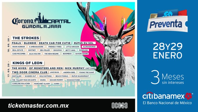 Redacción/La Voz de Michoacán México. Tras la espera de su primera edición Corona Capital Guadalajara ha revelado la lista de artistas de su siguiente edición, la cuál será el 16 y 17 de mayo. Usuarios en redes sociales han expresado su aprobación y emoción por el cartel de esta nueva edición de Corona Capital. Yo después de ver el line up del Corona Capital GDL ???? pic.twitter.com/1QI0SFn7mD— Daniela Saraí (@dany_bauch) January 22, 2020 A través de redes sociales, se confirmó la presencia de The Strokes, Foals, Kings of Leon, Foals, The Hives para la tercera edición del festival Corona Capital Guadalajara. Se me metió un corona capital GDL en los ojos ??? pic.twitter.com/TilrbZ3vAP— Sol (@Solglzz) January 22, 2020 Estos como los artistas principales sin embargo la variedad de músicos va desde Of Monsters and Men, Two Door Cinema Club, Jake Bugg, entre otros. La preventa Banamex se realizará los días 28 y 29 de enero, y la venta general será el próximo 31 de enero.