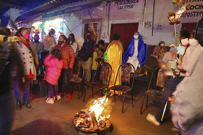 Omar Cuiriz / La Voz de Michoacán Pátzcuaro, Michoacán. Ha caído la noche sobre Pátzcuaro y en una esquina de la calle Codallos, niños vestidos de María, José, Angelitos y vecinos se prepararon para iniciar, como cada año, la primera posada de nueve, previas a la Navidad. En punto de las 19:00 horas, inició el rezo mientras María se sube a un burrito real, y parte la peregrinación que recorre varias calles. “Belén campanas de Belén”, suena por las calles de este pueblo mágico que aún conserva esta tradición navideña mexicana. Unas 50 personas con pequeñas velas oran y cantan detrás de los niños que representan a Los Peregrinos; “La Virgen se está peinando, entre cortina y cortina”, suena acompañado de una joven que toca la guitarra. Las posadas que dieron inicio este 16 de diciembre se estarán realizando hasta la Noche Buena a partir de las 19:00 horas, lo que sí duda extiende esta tradición que cada vez se ve menos en el país. Foto: Christian Hernández, La Voz de Michoacán. Este Pueblo Mágico sigue festejando las posadas tradicionales, una de las celebraciones navideñas como ninguna otra. Desde el 16 y hasta el 24 de diciembre, en Pátzcuaro y Michoacán se celebrarán las posadas, con ponche, cantos, rezos, aguinaldos y un ambiente muy hogareño para representar el peregrinaje de la virgen María y José, previo al nacimiento de Jesús. Foto: Christian Hernández, La Voz de Michoacán. El origen de las posadas se remonta al siglo XVI, y si bien son de carácter religioso, la expansión del catolicismo en México –y varias regiones de Centroamérica– las ha convertido en una celebración indispensable de la temporada navideña. Foto: Christian Hernández, La Voz de Michoacán.