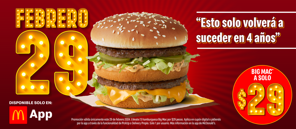 Redacción / La Voz de Michoacán Morelia, Michoacán. Para este día tan especial 29 de febrero, las cadenas de comida rápida, además de la sala de cine se han sumado para dar promociones a los clientes y puedan disfrutar de una experiencia única este día especial. Las cadenas que se han sumado a estos descuentos son: Carl´s Junior, poniendo sus hamburguesas a 2x1 en su hamburguesa especial western bacon cheeseburger, esta promoción estará solo por el día de hoy. Foto: Especial Burger King, en la compra de cualquiera de sus combos podrás comprar la siguiente hamburguesa a solo $10 pesos. Esta promoción estará por tiempo indefinido de lunes a jueves después de las 6 de la tarde. Ver esta publicación en Instagram Una publicación compartida de Burger King México (@burgerkingmx) McDonald’s, solo por hoy podrás comprar hamburguesas Big Mac a tan solo $29 pesos. Foto: Especial Cinemex, tambien se sumó a estas promociones poniendo todas sus entradas 2D, 3D y atmos A $29 pesos, excepto las películas de “Todos somos extraños”, “El Halcón” y “Duna: Parte 2” Ver esta publicación en Instagram Una publicación compartida de Cinemex (@cinemex)