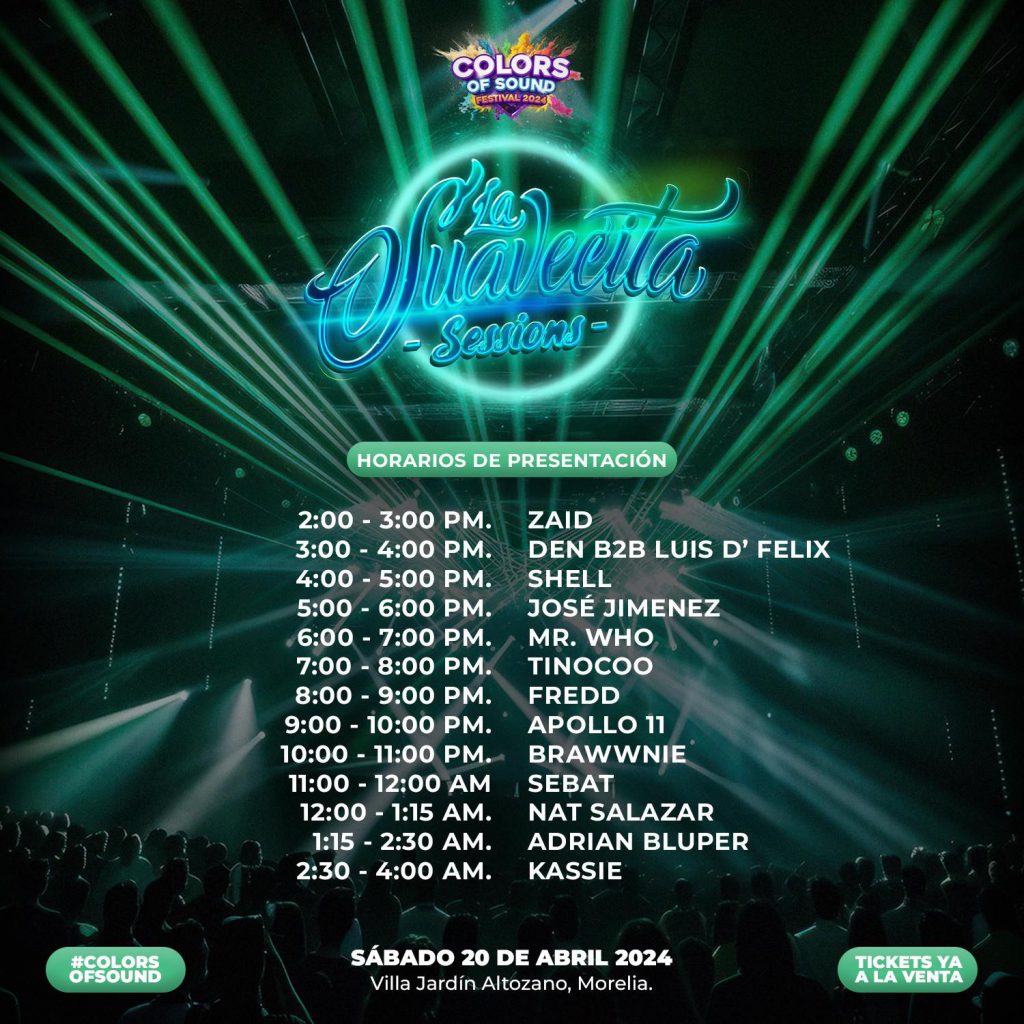 Inspirado en las festividades hinduistas, Colors of Sound es parte de un fenómeno global que ha cautivado a audiencias de todo el mundo. Durante más de diez horas, los mejores DJs nacionales y locales tocarán música electrónica mientras los participantes arrojan polvos de colores al aire, creando una nube de colores.