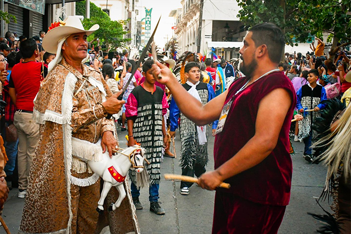 Redacción / La Voz de Michoacán Morelia, Michoacán. Santo Santiago se bate en duelo de espadas, a través de la danza, contra el demonio, representado en los emblemáticos Tlahualiles de Sahuayo, Michoacán. Esta ciudad, localizada al noreste de la entidad michoacana, vive sus tradicionales fiestas en honor del Apóstol Santiago, la celebración más grande antes que la del mártir San José Sánchez del Río y la de la Virgen de Guadalupe, desde el pasado 16 de julio y que culminarán el próximo 4 de agosto. Este martes 25 de julio, es la fiesta principal, según el calendario católico, de este santo muy venerado en diversas partes del estado y del país, y en Sahuayo no es la excepción, donde a partir de las 11:00 horas tendrá lugar la representación de “La lucha de la Fe” en la Danza de los Tlahualiles, en la plaza principal Miguel Hidalgo, con la participación de la Banda de Viento Tradicional Tacuárense. Sin embargo, el 4 de agosto se llevará a cabo el Día del Tlahualil, con la mega representación de la “La lucha de la Fe” por la agrupación de Tlahualiles de Sahuayo. Foto: Facebook Gobierno de Sahuayo. CONOCE LA DANZA DE LOS TLAHUALILES Esta danza muestra claramente el carácter bélico religioso y va describiendo la lucha entre lo pagano y lo católico, donde el Señor Santiago se bate en duelo de espadas con los Tlahualiles, quienes representan a los demonios. Santo Santiago es representado por un hombre con capa, espada y caballo, aunque este último elemento es apenas un cinto del que sobresale una cabeza de caballo. Foto: Facebook Gobierno de Sahuayo. En la indumentaria de los Tlahualiles destaca una colorida máscara que se fusiona con una cresta a manera de penacho de más de un metro de altura. Dicha máscara-penacho alcanza los 30 kilogramos de peso. Por otra parte, los Tlahualiles van vestidos con una especie de bata roja de terciopelo con barritas metálicas cosidas desde el pecho hasta la bastilla del traje, a manera de flequillo y cascabel. Foto: Facebook Gobierno de Sahuayo. Los Tlahualiles realizan una procesión, la cual es encabezada por la imagen del Patrón Santiago, seguido por las cuatrillas integradas por niños, jóvenes y adultos. Durante la procesión, todos los grupos de Tlahualiles entran a todas las iglesias que se encuentran a su paso a lo largo del recorrido, hasta llegar a la iglesia en que habrá de quedarse el santo patrono, recorrido que se prolonga hasta toda la noche. Foto: Facebook Gobierno de Sahuayo. MÁS DE LOS FESTEJOS EN SAHUAYO • 25 de julio (21:00 horas): Presentación de DJ’s Élite, en la plaza principal Miguel Hidalgo, y de las bandas Sahuayo y Pelillos, frente a la presidencia municipal.• 26 de julio (20:00 horas): Banda Gran Marimbol, en la plaza principal Miguel Hidalgo.• 27 de julio (19:00 horas): Escuela de Danza VI Dance Studio, en la plaza principal Miguel Hidalgo; Grupo Broadway (20:00 horas / plaza principal).• 28 de julio (20:00 horas): Grupo Selección Musical, en la plaza principal Miguel Hidalgo.• 29 de julio (20:00 horas): Contrapunto Norteño, en la plaza principal Miguel Hidalgo.• 30 de julio: Exposición Pictórica Ifantil Taller de Pintura “El Arlequín” (11:00 horas / plaza Miguel Hidalgo); presentación de “La lucha de la Fe” por la Danza de Tlahualiles de Sahuayo (13:00 horas / plaza Miguel Hidalgo); Nova Generación (20:00 horas / plaza Miguel Hidalgo).• 31 de julio: Exposición cultural Jugando con Teo el Tlahualil (18:00 horas / plaza Miguel Hidalgo); Banda Sahuayo (20:00 horas / plaza Miguel Hidalgo).• 1 de agosto: Exposición de dibujo y pintura, de la autora Virginia Álvarez del taller de pintura “El Arlequín”; Surpiro Norteño (20:00 horas / plaza Miguel Hidalgo).• 2 de agosto: “Día del Tlahualil”, mega representación de la “La lucha de la Fe” por la agrupación de Tlahualiles de Sahuayo (20:00 horas / plaza Miguel Hidalgo); Banda Tekila (20:00 horas / plaza Miguel Hidalgo).• 3 de agosto: Exposición Fotográfica “Elaborando para el Mundo”, del autor Luis Fernando Villanueva (18:00 horas / plaza Miguel Hidalgo). Súper Show Cassio (20:00h horas / plaza Miguel Hidalgo). • 4 de agosto: Representación de “La lucha de la Fe” por la Danza de Tlahualiles de Sahuayo (11:00 horas / plaza Miguel Hidalgo); DJ’s Élite (21:00 horas / plaza Miguel Hidalgo); Horacio y su Quinto Norteño, además de la Incontenible Banda Astilleros (21:00 horas / frente a la presidencia municipal). Con información de la Secretaría de Turismo de Michoacán y del Ayuntamiento de Sahuayo.