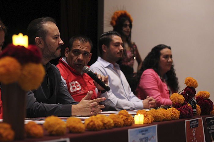 En rueda de prensa, el director de Enlace Regional y Productos Turísticos, Fausto Vallejo Mora, refrendó el compromiso del Gobierno estatal por apoyar y difundir eventos que impulsen el turismo y la economía local, apegados siempre al rescate de las tradiciones, como la Noche de Muertos.