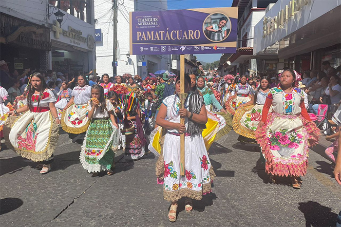 Morelia, Michoacán. Con desfile, música, baile y vestimenta tradicionales michoacanos, inició este sábado el Tradicional Tianguis Artesanal de Uruapan, que se llevará a cabo desde este sábado 23 de marzo hasta el 7 de abril, con horario de 9:00 a 21:00 horas.