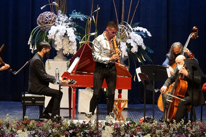 Yazmin Espinoza / La Voz de Michoacán Morelia, Michoacán. Horacio Franco fue el encargado de inaugurar la edición 32 del Festival de Música de Morelia Miguel Bernal Jiménez (FMM), quien estuvo acompañado por el Ensamble Cappella Barroca de México, compartiendo su talento y un amplio programa musical de Antonio Lucio Vivaldi. En un breve protocolo inaugural previo al concierto, la directora del FMM, Verónica Bernal, agradeció todo el apoyo por parte de los patrocinadores, Consejo Técnico y público en general al festival que celebra este año 32 años ininterrumpidos de celebrar la música en Morelia. Asimismo, destacó lo importante de este tipo de eventos en el escenario actual ya que la música funciona como un bálsamo para las sociedades que se encuentran en crisis por la contingencia sanitaria por el COVID-19. Tras la declaratoria inaugural, los integrantes del Ensamble Cappella Barroca de México, que estarían dirigidos por el flautista, y también solista del concierto, Horacio Franco, ingresaron al escenario del Teatro Ocampo de esta capital michoacana, sala en la que hubo público por primera vez en ocho meses. El programa del concierto estuvo conformado por siete conciertos para flauta y cuerdas de Vivaldi: Concierto no. 6, en Sol Mayor Op. 10 Rv 437 8’, Concierto en Sol Mayor, RV 312 8’, Concierto para Flauta en Re Mayor, 9’30” RV 428, Op. 10 “Il Gardellino”, Concierto para Flauta en sol menor, RV 439, 10’ Op. 10 no. 2 “La Notte”, Concierto en Do Mayor, P. 79 RV 443 10’ y Concierto en sol menor, Op. 8 no. 8 RV 332 de “Il 4’ Cimento dell’a armonia e dell’invenzione”.