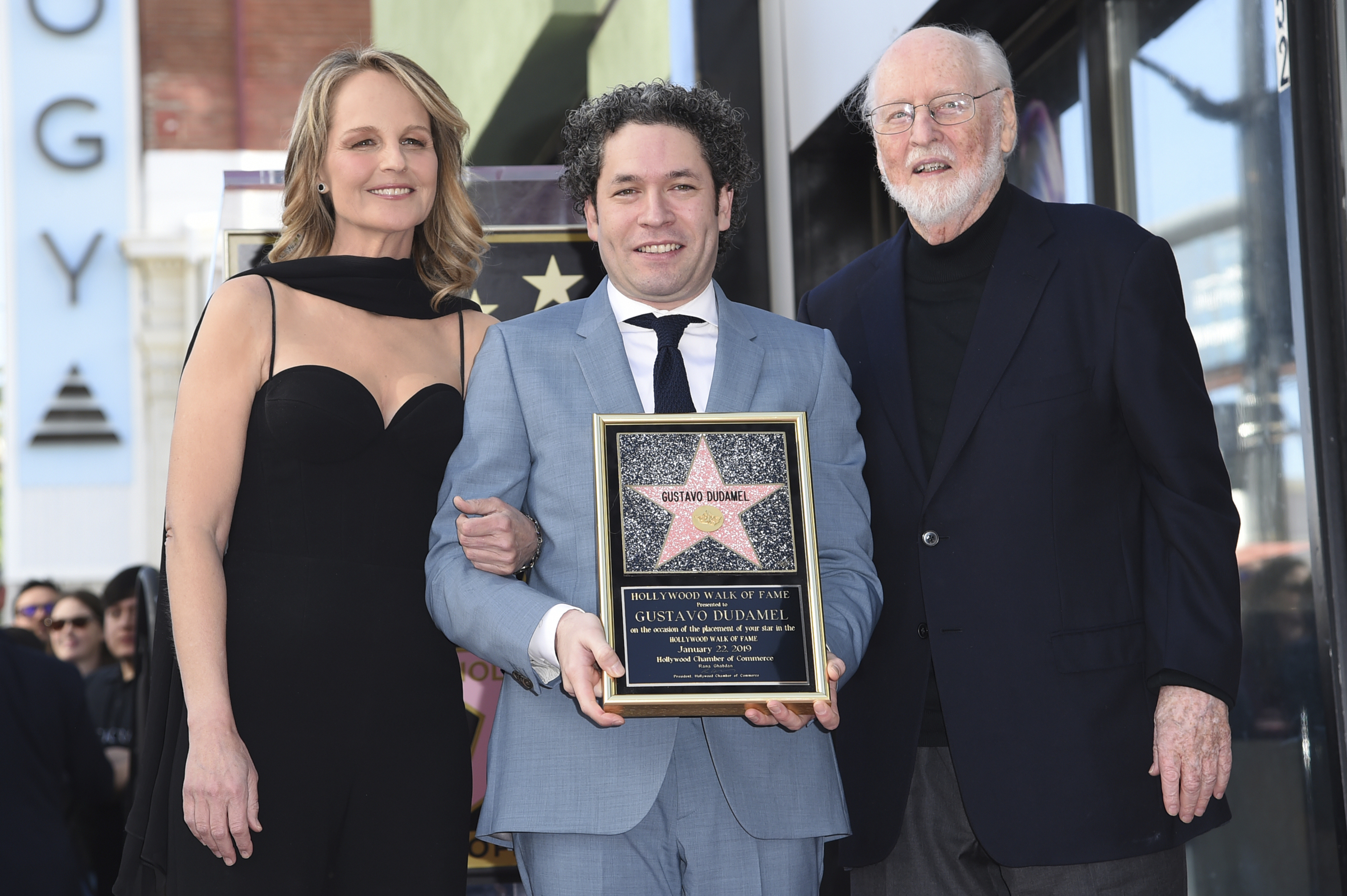 AP/La Voz de Michoacán Los Ángeles, Estados Unidos. Este martes su estrella en el Paseo de la Fama de Hollywood en una ceremonia en la que participaron el compositor John Williams y la actriz y directora Helen Hunt. Acompañado por su hijo Martín y su esposa María Valverde, Dudamel fue honrado por la Cámara de Comercio de Hollywood en el 10mo aniversario de sus labores como director musical y artístico de la Filarmónica de Los Ángeles y durante la 100ª temporada de la orquesta. Su estrella, bajo la categoría de grabación, está en el número 6752 del Bulevar de Hollywood, frente al Instituto de Músicos. “Gustavo Dudamel es uno de los principales directores del mundo de la música clásica. Evoca los sonidos de los grandes músicos clásicos y se los sirve perfectamente a admiradores nuevos y renovados de todo el mundo”, dijo Ana Martínez, productora del Paseo de la Fama, cuando se anunció la noticia de su estrella a principios de mes. “Celebramos los logros de Gustavo Dudamel y recibimos su clásico brillo en nuestro Paseo de la Fama”. Dudamel (Barquismento, Venezuela, 1981) es uno de los directores clásicos de mayor renombre internacional. Entre sus logros esta temporada se destaca su debut con la Ópera Metropolitana de Nueva York con “Otello” y giras con la Filarmónica de Berlín y la Orquesta de Cámara Mahler, además de su primera residencia académica en la Universidad de Princeton. Tras ser miembro de El Sistema, el programa educativo venezolano creado por José Antonio Abreu que ha instruido música clásica a centenares de niños desde 1975, Dudamel cumple 19 años como director musical de la Orquesta Sinfónica Simón Bolívar. Es también director de la Orquesta Juvenil de Los Ángeles (YOLA) y creador de la Fundación Gustavo Dudamel, que apoya el acceso a la música como un derecho humano para el aprendizaje, la integración y el cambio social. Su homenaje coincidió con el anuncio de las nominaciones a los Premios de la Academia. El 24 de febrero podrá ser visto en vivo en la gala del Oscar con la Filarmónica de Los Ángeles.