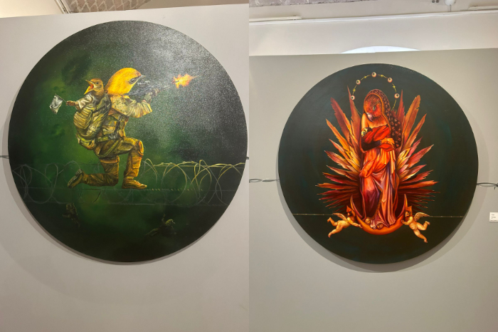 La exposición “Pájaros en el alambre” de Aram Cortés, que actualmente se encuentra en el Centro Cultural Clavijero, representa a aves antropomorfas en distintas facetas humanas como lo es la guerra, la religión, el poder, el género y la enfermedad. Así, se esboza una crítica tenue hacia estos aspectos, frente a los cuales no termina de posicionarse a favor o en contra.