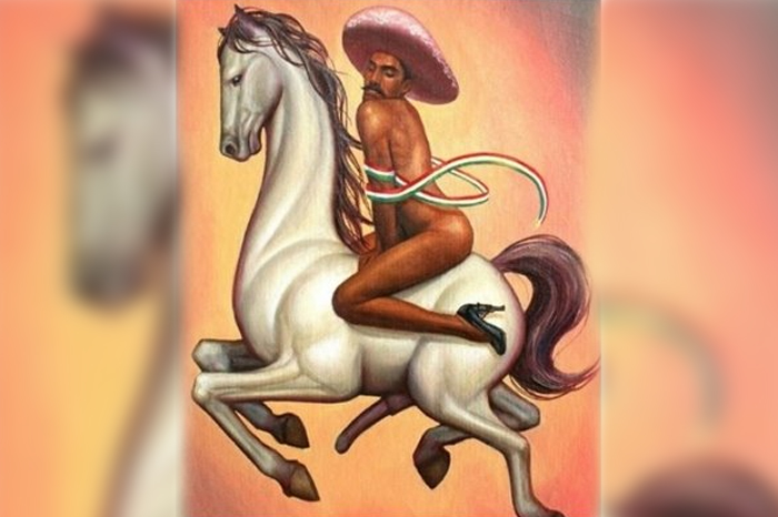 El Universal/La Voz de Michoacán México.La Secretaría de Cultura federal promocionó la exposición Emiliano. Zapata después de Zapata con un cartel en el que aparece la pintura de Fabián Cháirez. (Chiapas, México. 1987) en la que se ve al líder de la Revolución Mexicana con tacones y encima de un caballo blanco. “Las diversas representaciones de Zapata a lo largo de 100 años son exploradas en Emiliano. #ZapataDespuésDeZapata, exposición que reúne 141 obras sobre el Caudillo del Sur provenientes de 70 colecciones nacionales e internacionales”, señaló la Secretaría de Cultura La publicación que hizo la dependencia a través de su cuenta oficial de Facebook ha provocado más de mil reacciones y alrededor de 500 comentarios en los que califican el uso de la pintura como una falta de respeto o una burla hacia los héroes nacionales. “Si Zapata fue homosexual en vida o no, eso fue su vida privada, ¿no les parece discriminatorio hacer un cuadro de alguien ridiculizándolo por su preferencia sexual, en vez de resaltar su lucha y sus ideales y enseñar eso a las nuevas generaciones?, esto además de falta de respeto me parece discriminatorio porque no tendría nada que ver su orientación sexual con su legado, ojalá se den cuenta de este error y se disculpen”, señaló una usuaria. Otro usuario dijo que representar así a Emiliano Zapata es una forma de ridiculizarlo: “No encuentro necesidad , no le encuentro la belleza pintarle el falo erecto al caballo, es Bellas Artes no la pulquería del arcoiris”. En un comentario más, una usuaria indicó que no ha visto que en otro país se burlen así de sus héroes nacionales: “México siempre queriendo ir un paso adelante, pero sólo se logra en banalidades y cosas burdas”. A la publicación han reaccionado más de mil 300 personas: 486 indicaron “Me gusta”; 326 “Me divierte”, 309 “Me encanta”, 153 “Me enoja”, 61 “Me sorprende”, y 19 “Me entristece”. Además, hasta el momento ha sido compartida más de 250 veces. El cartel promociona la exposición "Emiliano. Zapata después de Zapata”, que estará hasta el 16 de febrero en el Museo del Palacio de Bellas Artes y está conformada por 141 obras provenientes de 70 colecciones nacionales e internacionales, tanto públicas como privadas.