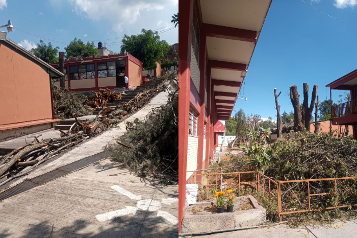 Redacción / La Voz de Michoacán Morelia, Michoacán. Padres de familia que tienen a sus hijos estudiando en la Escuela Secundaria Técnica 82 “Prof. Lucas Ortiz Benítez” se comunicaron a esta Redacción a fin de denunciar la tala masiva de árboles en el plantel. Los paterfamilias del plantel ubicado en la calle Lomas de la Mesa número 63, en la colonia Dr. Ignacio Chávez, comentan que se les dijo que los árboles serían podados, pero muchos de ellos han sido derribados por completo, mientras que de otros sólo quedó el tronco. Por ese motivo demandan que se les dé una explicación sobre lo que consideran un ecocidio, ya que la directiva del plantel no les ha informado si para tal acción se contó con el permiso de autoridades municipales y ambientales, y es que el arbolado del plantel es un importante pulmón para esa colonia, por lo que reprochan la tala masiva.