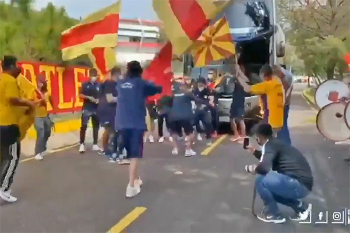 Un video que publicó la cuenta oficial de Twitter del Morelia muestra a un grupo de aficionados de la Locura81 frente al autobús del equipo. Ondean banderas, resuenan los tambores, gritan porras.