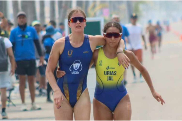 Redacción / La Voz de Michoacán Campeche. Un acto de compañerismo y solidaridad fue el gran protagonista en la segunda y última jornada del triatlón en los Nacionales CONADE 2024, luego de que la jalisciense Gabriela Urías sacrificó su resultado en la categoría 16-17 años para ayudar a cruzar la meta a Vivianne Cramer, representante de la UNAM. Por segundo día en fila, Ciudad del Carmen, Campeche, fue testigo de apasionantes competencias en dicha especialidad, sin esperar que los resultados y las medallas quedarían en segundo plano, luego de que se suscitara un hecho inesperado, pero sobre todo que se llevaría todas las atenciones a nivel nacional. “Vi a mi compañera tropezando a causa del calor y la deshidratación. Al verla sentí un impulso por ayudarla, y no dudé en acercarme. La levanté y la llevé apoyada sobre mí hacia la meta, dándole impulso para que pudiera llegar en el lugar que se había ganado. "Al final del día es solo un resultado que no me define como atleta, y el ganar no lo es todo. Estoy muy orgullosa de haber podido ayudar a mi compañera y también de mí misma", declaró la atleta.