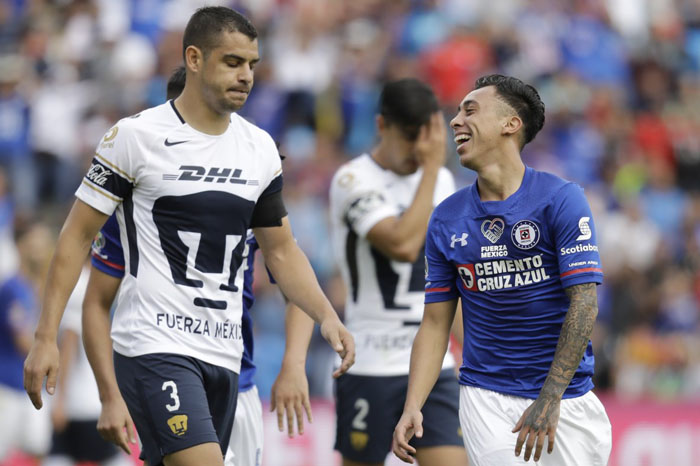 Notimex/La Voz de Michoacán Querétaro, Querétaro. Pumas de la UNAM tocó fondo y eso lo aprovechó Cruz Azul para vencerlo 4-1, en partido de a fecha 12 del Torneo Apertura 2017 de la Liga MX, disputado en el estadio La Corregidora, donde el cuadro "felino" fungió como local. La escuadra auriazul había tomado la delantera en el marcador con el tanto de Luis Quintana, en el minuto 20, pero sus errores permitieron que la "Máquina" le diera la vuelta con dobletes de los chilenos Martín Rodríguez (40 y 46) y Felipe Mora (62 y 73). El resultado, que le permite a los celestes recobrar la confianza tras la goleada en Pachuca, los deja en 18 unidades en la tabla general, mientras, con sus siete puntos, Pumas está cerca de ocupar el sótano, si Puebla no decide otra cosa. Revive los goles del partido: #NoTeLoPierdas 2do G⚽⚽⚽L de Felipe Mora@PumasMX 1-4 @Cruz_Azul_FC #J12AP2017 #LIGABancomerMX ⚽ #SienteTuLiga ⚽ #FuerzaMexico ?? pic.twitter.com/whSgGiJoLV — LIGA Bancomer MX (@LIGABancomerMX) 1 de octubre de 2017 El tercer gol, por Felipe Mora: #NoTeLoPierdas G⚽⚽⚽L de Felipe Mora@PumasMX 1-3 @Cruz_Azul_FC #J12AP2017 #LIGABancomerMX ⚽ #SienteTuLiga ⚽ #FuerzaMexico ?? pic.twitter.com/ZABSvTTgXZ — LIGA Bancomer MX (@LIGABancomerMX) 1 de octubre de 2017 Martín Vladimir Rodríguez de Cruz Azul remata dentro del área al minuto 46: #NoTeLoPierdas G⚽⚽⚽LAAAAAZO de Martín Rodríguez@PumasMX 1-2 @Cruz_Azul_FC #J12AP2017 #LIGABancomerMX ⚽ #SienteTuLiga ⚽ #FuerzaMexico ?? pic.twitter.com/wB5pCCLOSG — LIGA Bancomer MX (@LIGABancomerMX) 1 de octubre de 2017 ¡Martín Vladimir Rodríguez remata dentro del área al minuto 39! #NoTeLoPierdas G⚽⚽⚽L de Martín Rodríguez@PumasMX 1-1 @Cruz_Azul_FC #J12AP2017 #LIGABancomerMX ⚽ #SienteTuLiga ⚽ #FuerzaMexico ?? pic.twitter.com/QPdkVLg7GT — LIGA Bancomer MX (@LIGABancomerMX) 1 de octubre de 2017 ¡Luis Fernando Quintana remató dentro del área al minuto 20! #NoTeLoPierdas G⚽⚽⚽L de Luis Quintana @PumasMX 1-0 @Cruz_Azul_FC #J12AP2017 #LIGABancomerMX ⚽ #SienteTuLiga ⚽ #FuerzaMexico ?? pic.twitter.com/2Z1yzjuwJF — LIGA Bancomer MX (@LIGABancomerMX) 1 de octubre de 2017