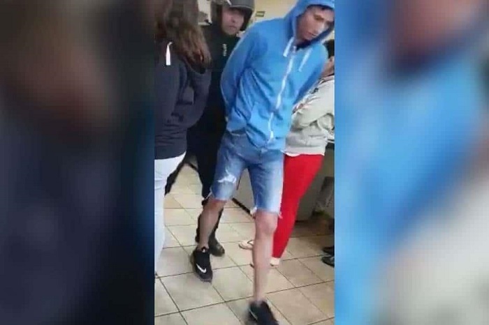 A través de las redes sociales algunos usuarios publicaron videos del momento en el que el futbolista fue esposado y escoltado por tres elementos de seguridad.