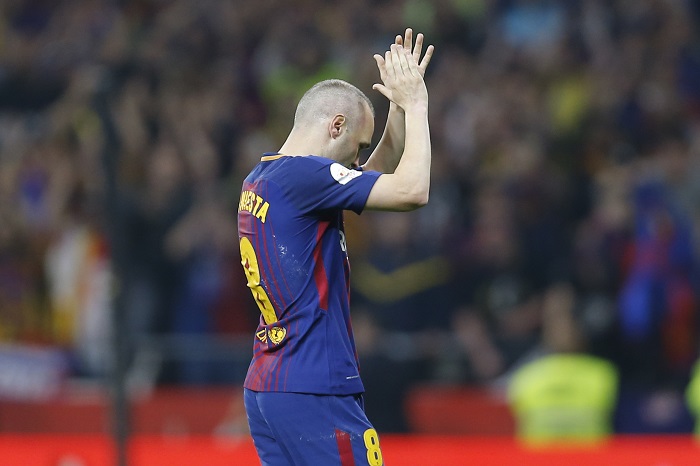 Al minuto 80, Andrés Iniesta capitán del Barca, entregó el brazalete al delantero argentino Lionel Messi, con lo cual marcó su salida del club y de la Liga Española, después de 22 años con el equipo catalán.