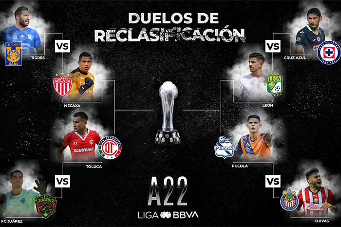 Redacción / La Voz de Michoacán Morelia, Michoacán. Con tres partidos disputados en la jornada dominical, en los que Toluca goleó a Querétaro (4-1), Santos hizo lo propio contra Mazatlán (3-0) y el empate del León contra Xolos (2-2), acabó la fase regular del Apertura 2022 de la Liga MX y quedaron definidos los duelos de la reclasificación en busca de acceder a los Cuartos de Final. En la antesala de las semifinales ya están el líder América, Monterrey, Santos y Pachuca, que obtuvieron este derecho por haber quedado en los primeros cuatro lugares de la clasificación general, de acuerdo al Reglamento de Competencia del máximo circuito del futbol mexicano. Los siguientes ocho lugares de la clasificación, del 5 al 12, jugarán el repechaje a un solo partido en el estadio del mejor posicionado de la tabla, de los cuales cuatro avanzarán a la siguiente fase; el criterio de desempate son los tiros penales. ASÍ QUEDA LA RECLASIFICACIÓN 5° Tigres vs 12° Necaxa6° Toluca vs 11° FC Juárez7° Cruz Azul vs 10° León8° Puebla vs 9° Guadalajara Este lunes, en reunión virtual con los representantes de los clubes participantes, se definirán las fechas y horarios de la repesca.