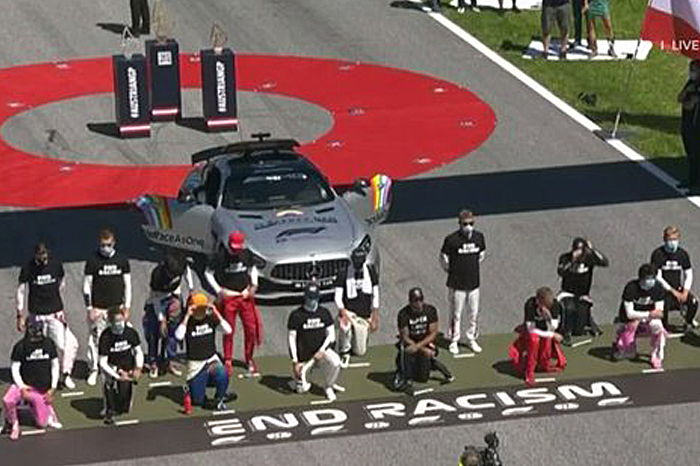 Austria. Tremendo momento de silencio en contra del racismo realizaron la mayoría de los pilotos de la Fórmula Uno, quienes se arrodillaron antes de entonarse el himno austriaco en la parrilla de salida del Gran Premio de Austria, donde Valtteri Bottas se llevó el GP de Austria, primera carrera del Mundial que se disputó este domingo en el Red Bull Ring de Spielberg.