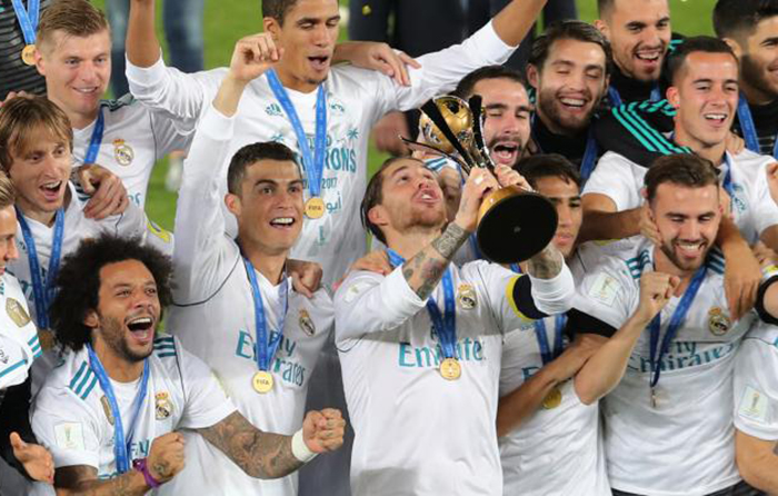 El Universal/La Voz de Michoacán Abu Dabi, Emiratos Arabes Unidos. Un tanto de Cristiano Ronaldo a los 53 minutos tumbó el planteamiento del Gremio y dio al Real Madrid su tercer Mundial de Clubes, igualando al Barcelona como equipo más laureado del torneo. El Real Madrid cierra el año con más títulos de su historia, un 2017 en el que ha conseguido cinco, con un Mundial de Clubes en Abu Dabi que decidió el máximo goleador de la historia de la competición, el portugués Cristiano Ronaldo, con un lanzamiento de falta. Fue el premio al dominio del equipo dirigido por Zinedine Zidane, especialista en ganar finales, ante un Gremio que no chutó en ninguna acción del partido a puerta.