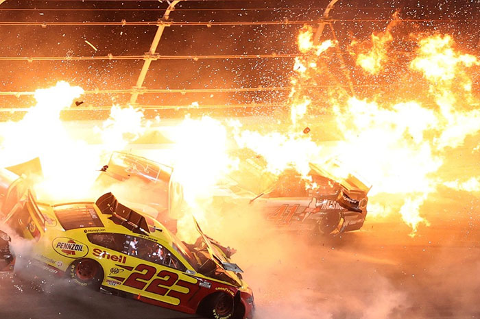 Redacción / La Voz de Michoacán Ocurría la última vuelta en las 500 millas de Daytona en el Nascar, Joey Logano se perfilaba a la meta para proclamarse campeón, cuando ocurrió el impactante accidente en el que se vieron involucrados varios autos. Todo ocurrió cuando en los metros finales el piloto Michael McDowell tocó la parte trasera del auto de Brad Keselowski, y este a su vez el de Logano, que lideraba la competencia, y ambos perdieron el control, lo que generó el choque múltiple. Los pilotos que venían detrás no pudieron esquivarlos y también se impactaron; al menos siete vehículos se vieron involucrados, varios de ellos se incendiaron, que fueron captados en impresionantes imágenes. Por fortuna, todo quedó en daños materiales y fue McDowell quien encontró un espacio entre los punteros al momento del percance, y cruzó la meta para quedarse con la primera victoria en su trayectoria en el Nascar.