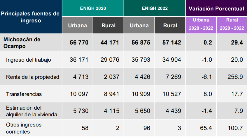 Jorge Ávila / La Voz de Michoacán Morelia, Michoacán. Este miércoles se dieron a conocer los resultados de la Encuesta Nacional de Ingresos y Gastos de los Hogares 2022. El ejercicio, además de reflejar que Michoacán está por debajo de la media nacional en materia de ingresos, también evidencia que la brecha de género y por razones étnicas persiste en la entidad. De manera general, el ingreso promedio trimestral de Michoacán fue, para las mujeres, de 18 mil 089 pesos, frente a los 27 mil 567 pesos percibidos por los hombres en 2022. En el estado de Michoacán el INEGI tiene contabilizados un millón 428 mil 263 hogares, en los que viven 4 millones 942 mil 827 personas. En la mayoría de esos hogares, 62.3 por ciento, el ingreso llega por la vía del trabajo. El ingreso diario por hogar en Michoacán durante 2022 fue de 170.33 pesos diarios por perceptor, es decir, por persona que recibe ingresos en el hogar. Vivir en la ciudad, vivir en el rancho En cuanto al lugar de residencia, la diferencia entre el ingreso de quienes viven en un entorno urbano y quienes viven en el ámbito rural no es muy grande, ya que en 2022 el ingreso trimestral por hogar en zona urbana fue de 35 mil 793 pesos, frente a los 34 mil 904 pesos trimestrales de ingreso en los hogares rurales. Así, contando los demás tipos de ingreso, como renta de la propiedad, transferencias, estimación de alquiler de vivienda y otros, el ingreso trimestral en 2022 fue de 56 mil 875 pesos en zonas urbanas, no muy por debajo de los 57 mil 142 pesos de la zona rural. Aquí lo interesante es que en 2022 los ingresos fueron mayores para las zonas rurales que para las urbanas, mientras que en 2020 hubo una brecha más amplia entre la zona urbana y la rural: en el entorno urbano, en 2022 el ingreso trimestral por hogar fue de 56 mil 770 pesos, muy superior a los 44 mil 171 trimestrales que se obtuvieron en los hogares rurales en ese año. Ser mujer indígena en Michoacán No sólo en materia de género hay disparidad, ya que las diferencias entre los ingresos de las personas que pertenecen a algún pueblo originario y quienes no, son significativas, puesto que en 2022, quienes no se consideran indígenas ni hablan lenguas originarias percibieron un ingreso trimestral de 25 mil 937 pesos, muy por encima de los 19 mil 627 pesos que percibieron quienes sí se consideran indígenas o hablan alguna lengua originaria. Pero quienes sólo se consideran indígenas percibieron aún menos: 19 mil 555 pesos, y quienes hablan alguna lengua indígena ganaron sólo 13 mil 852 pesos: una diferencia de 11 mil 167 pesos entre estos últimos y quienes no se consideran indígenas. En este rubro además es notoria la brecha de género, ya que una mujer no indígena percibió 20 mil 162 pesos, 9 mil 626 pesos menos que los hombres. Por su parte, una mujer indígena ganó 14 mil 688 pesos, 9 mil 469 menos que un hombre que se considere parte de alguna etnia. Más hijos, menos ingresos Por otro lado, de acuerdo con la encuesta, la maternidad también fue determinante en 2022 en materia de ingresos, donde la brecha de género persiste, puesto que mientras un hombre de 18 a 49 años percibió 29 mil 666 pesos en 2022, una mujer en el mismo rango de edad ganó 18 mil 089 pesos De las personas sin hijos, los varones ganaron 25 mil 150 pesos, trimestrales, muy por encima de los 17 mil 222 pesos percibidos por mujeres. A medida que aumenta el número de hijos, tanto hombres como mujeres tienen menos ingresos: Con un hijo, en 2022 los hombres ganaron 32 mil 221 pesos, casi 12 mil más que las mujeres, que percibieron 20 mil 682. Con dos hijos la percepción trimestral de los varones subió a 40 mil 030 pesos, más del doble que las mujeres, que disminuyó a 18 mil 903 pesos. Con tres hijos, la percepción trimestral de las mujeres disminuyó aún más, llegando a 16 mil 910 pesos, casi la mitad de las percepciones de los hombres, que llegaron a 31 mil 752 pesos, una reducción respecto a quienes tienen 2 descendientes. Con 4 hijos la cosa se agrava aún más, ya que las percepciones de las mujeres cayeron hasta los 11 mil 457 pesos trimestrales, frente a los 24 mil 375 pesos que obtuvieron los varones con el mismo número de hijos. Brecha por escolaridad En cuanto al ingreso de acuerdo con el grado de escolaridad, en forma trimestral el ingreso en 2022 para quienes contaban sólo con la primaria fue de 15 mil 098 pesos, de 19 mil 317 pesos para quienes tenían la secundaria, 30 mil 476 pesos para aquellos que tenían el bachillerato, 39 mil 006 pesos para quienes tenían estudios superiores aunque no hubieran concluido una carrera, y para quienes tenían un posgrado completo o inconcluso el ingreso trimestral fue de 79 mil 053 pesos en 2022. En el tema de la brecha de género, ésta no respetó grado académico, pues tanto una mujer con sólo la primaria como una con posgrado ganaron menos que los varones: en el primer caso, las mujeres con sólo estudios de primaria ganaron 10 mil 869 pesos, muy por debajo de los 19 mil 187 pesos percibidos por los varones. Y aunque las mujeres con posgrado percibieron una cantidad muy superior, no superó las percepciones de los varones en el mismo nivel académico: 71 mil 866 las mujeres frente a los 87 mil 725 que los hombre con posgrado (concluido o inconcluso) ganaron trimestralmente en 2022.