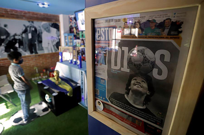 EFE / La Voz de Michoacán San Andrés Cholula, Puebla. Al sincretismo religioso del poblado mexicano de San Andrés Cholula, conocido por tener un santuario católico edificado sobre una pirámide precolombina, se le suma ahora la primera Iglesia Maradoniana en México, dedicada al fallecido astro del balón. Los seguidores en México y el resto del mundo del estelar Diego Armando Maradona, fallecido el 25 de noviembre de 2020, cuentan ahora en el estado de Puebla, centro de México, con un centro ceremonial para los aficionados del fútbol, un espacio casi tocado por la “mano de Dios “, frase del famoso futbolista. Foto: EFE. EL “D10S “ ARGENTINO En el municipio de San Andrés Cholula, a unos 14 kilómetros de Puebla capital, se instaló el segundo sitio en el mundo para adorar al “D10S “argentino, ya que desde 1998 se había creado una iglesia de este tipo en Rosario, Argentina. La Iglesia Maradoniana mexicana se encuentra a unas calles del Santuario de la Virgen de los Remedios, un templo católico ubicado en la cima de la Gran Pirámide de Cholula y que inició su construcción en 1594. Al ingresar al lugar se entra a una dimensión futbolística única, donde el camino hacia “el altar “es de pasto sintético acompañado de tapetes en forma de balón, mientras que en los laterales se ubican las sillas para los “feligreses“, las cuales está decoradas con camisetas de diferentes equipos tanto mexicanos como argentinos y europeos, así como de selecciones nacionales de todo el mundo. En lo que representa la parodia del viacrucis de la religión católica tradicional, en los muros de este recinto se encuentran fotografías de alta escala donde aparece el llamado “Pibe de Oro “desde su infancia, hasta las imágenes más emblemáticas en su reunión con Fidel Castro, Lionel Messi y con el Papa Francisco. Así como cuadros con portadas de periódicos nacionales de la muerte, logros y “milagros “en la cancha del “Pelusa“, como llamaban a Maradona. Foto: EFE. CONTRA NINGUNA RELIGIÓN El creador y fundador de la Iglesia Maradoniana, Marcelo Buchet, compartió a Efe que esta idea la traía en la cabeza desde hace muchos años, pero se intensificó y comenzó con la planeación de este espacio cuando Maradona falleció debido a una insuficiencia cardíaca aguda que le generó un edema pulmonar. “Como estamos muy faltos de identidad, los argentinos no tenemos de donde agarrarnos y creo que entre Maradona y mi madre, no tenía otra causa; por ejemplo, para los mexicanos la Virgen de Guadalupe, para mí, Maradona es lo más importante “, dijo Buchet, un argentino nacionalizado mexicano y que llegó a este país hace 20 años. Además, precisó que esta iglesia “no está en contra de ninguna religión“ y aseguró que allí los “fanáticos del fútbol pueden acudir con un 'sacerdote' a realizar bodas, bautizos o primeras comuniones “, ya que es un espacio abierto como cualquier capilla en playa o salón de fiestas, “donde no se le falta el respeto a nadie y pueden llevar a cabo sus eventos sociales “. Buchet, aficionado del balompié desde niño, reveló que en 2018 conoció al astro argentino en su faceta como director técnico del equipo mexicano Dorados de Sinaloa y sintió una gran emoción, la cual lo hizo soñar con “ser tan grande como su ídolo “. Foto: EFE. Recordó que le entregó una carta al “10“ argentino, en la que le describía su admiración y le reconocía como el mejor jugador de Argentina en la Copa del Mundo de 1986 que se jugó precisamente en México y donde Maradona y Argentina levantaron el título, el segundo en la historia tras el de 1978 en su país. Refirió que antes le gustaba el fútbol, pero que alcanzó el grado de fanatismo en 2018 durante la Copa del Mundo de Rusia 2018, cuando con sus compañeros de escuela coleccionaba un álbum de jugadores y comenzó a seguir de cerca todo el acontecer de la justa deportiva y meses después conoció a su ídolo. A pesar de que el lugar abrió esta semana ha tenido buena respuesta de los asistentes y tanto aficionados como curiosos pasan por el lugar, “elevan oraciones “, admiran las imágenes y tienen “momentos de reflexión “, gracias a la tranquilidad del lugar, el templo mexicano para el ídolo argentino. Foto: EFE.