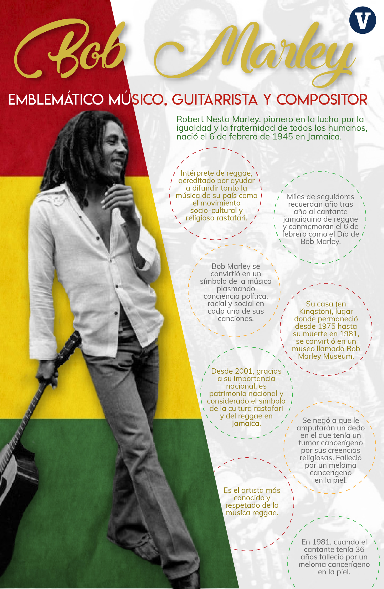 Redacción/La Voz de Michoacán Ciudad de México. Jamaica celebra todos los 6 de febrero el Día de Bob Marley en honor al natalicio del Rey del Reggae. Aquí te contamos algunos datos que quizá no sabías del músico: