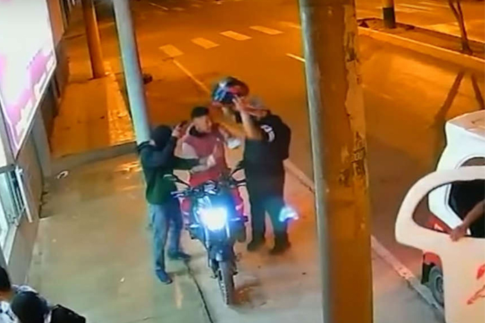 Agencias / La Voz de Michoacán Un video presentado en medios de Perú muestra el momento en el que un presunto delincuente cae fulminado por un balazo que se le escapa a su cómplice, al momento en el que asaltan a un joven que mira su celular a bordo de su motocicleta en calles de aquel país. En la grabación, se observa como dos sujetos con el rostro cubierto abordan al joven, quien en ese momento se encuentra realizando su trabajo como repartidor comida, uno de ellos lo despoja de su celular y también le quita el casco. En ese mismo momento, el otro sujeto, quien porta un arma de fuego, forcejea con el joven para que le entregue la motocicleta, pero al momento de golpear a la víctima, un disparo sale del arma y mata al instante a su cómplice. Al darse cuenta de lo sucedido, el agresor se aleja corriendo de la zona. El joven repartidor recoge su casco y pide a vecinos de la zona que llamen a la policía. https://twitter.com/aqmoncaleano/status/1506464741224554496?ref_src=twsrc%5Etfw%7Ctwcamp%5Etweetembed%7Ctwterm%5E1506464741224554496%7Ctwgr%5E%7Ctwcon%5Es1_&ref_url=https%3A%2F%2Fwww.excelsior.com.mx%2Ftrending%2Fdelincuente-mata-por-error-a-su-complice-durante-a-asalto-victima-sale-ilesa%2F1505908 De acuerdo con medios locales, el sujeto que perdió la vida era un extrabajador de una empresa de gas, quien tenía antecedentes por robo agravado. Datos del video revela que los hechos tuvieron lugar el pasado 21 de marzo, a las 20:58 horas, en el distrito de Hualmay, provincia de Huaura, región Lima.