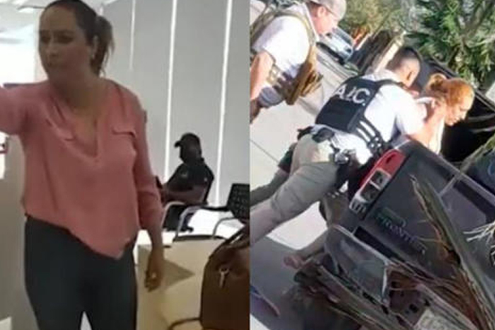 En nuevas imágenes virales, se puede apreciar el momento en que al menos tres elementos de seguridad discuten con "Lady DEA", quien entre gritos y manoteos trata de evitar su detención.