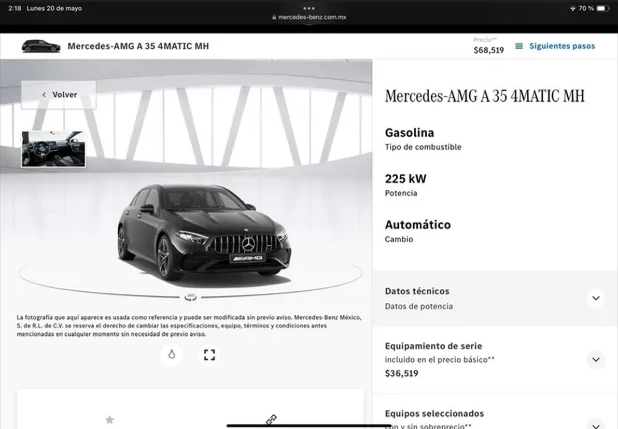 A través de sus redes sociales, la actriz Raquel Martínez mostró una foto en la que se mostraba un modelo Mercedes-AMG A 35 a tan solo 68 mil 519 pesos mexicanos, por lo que al ver esta “oferta”, rápidamente etiquetó a la Profeco en su publicación.