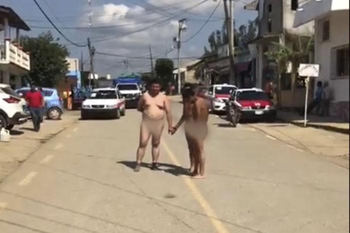 El Universal / La Voz de Michoacán Ciudad de México. En redes sociales circula un video en el que se ve a tres hombres desnudos en la vía pública, los cuales fueron exhibidos como represalia por robarse 15 vacas en la localidad de Suchilapan del Río, en el municipio de Jesús Carranza, según afirman medios locales veracruzanos. De acuerdo con testigos retomados por medios locales, los dueños del ganado vacuno captaron a los presuntos ladrones justo cuando estaban por llevarse a la vacada. No obstante, aunque de manera extraoficial se ha identificado a uno de los autores como un comerciante de carnes local, hasta el momento las autoridades no se han pronunciado ni han corroborado o desmentido esta información. En el video de ocho segundos y casi 4 mil vistas, se muestra a los tres hombres agarrados de la mano y parados a la mitad de lo que se afirma, es la calle Independencia, la cual se encuentra justo enfrente de la Asociación Ganadera Local de este municipio. Éste fue grabado por un lugareño que, mediante las preguntas "¿Por qué están ahí?" y "¿Cuántas vacas se robaron?" obliga a los presuntos ladrones a aceptar su responsabilidad en el acto denunciado. https://twitter.com/SinMurosMx/status/1196974690012684289