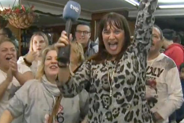 “¡Mañana no voy a trabajar! ¡Natalia [directora del programa], yo no trabaja mañana!”, expresó eufóricamente la comunicadora mientras realizaba un directo desde El Bar Pepe, en el municipio de San Vicente del Raspeig, en Alicante, una de las localidades españolas donde cayó el número ganador, el cual fue el 26.590.