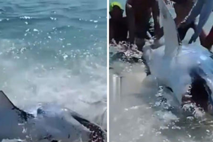 Agencias / La Voz de MichoacánEn redes sociales se ha comenzado a hacer viral un video de un enorme tiburón que quedó varado en una playa llena de turistas, lo que desató el pánico entre los presentes, aquí te contamos qué fue lo que pasó y cuál fue el desenlace de esta historia que ha acaparado los reflectores a nivel mundial, van los detalles. Fue la cuenta de X, antes Twitter, identificada como Animal Smackdown la que publicó el impactante video del tiburón que llegó a una playa de Florida, en Estados Unidos, se desconoce el motivo por el cual el enorme animal estaba en ese sitio, lo que le hizo quedar atorado en la arena, justo donde estaban las familias, por lo que ocasionó pánico. Según calculan, el tiburón pesaba unos 200 kilos y por lo que se observa en las imágenes, quedó sobre su costado izquierdo, sin poder moverse, esto ante la mirada de los turistas y una mujer quien grabó el momento con su celular, mientras el enorme pez se sacudía en su intento por regresar al mar. Fue entonces que un grupo de cuatro hombres intentó jalar, por la cola, al tiburón varado en la playa para que regresara a su hogar, sin embargo, al sentir la presencia de los sujetos, el pez solo comenzó a moverse con más fuerza, lo cual generó pánico entre los turistas, quienes al ver la presencia del animal, optaron por alejarse de la zona en la que había quedado atorado. Algunas voces que se escuchan en el video, pidieron a los hombres dejar de intentar ayudar al pez a regresar al agua, pues consideraron que era un riesgo para ellos, sin embargo, el el video de apenas 23 segundos de duración, el cual se hizo viral, se observa que los valientes turistas hacen lo posible por salvarle la vida. “Quisieron salvar al tiburón, pero este no cooperó”. “Al parecer no funciona”. “Espero que lo haya logrado”, fueron algunos de los comentarios al video. Hasta el momento se desconoce qué fue lo que pasó con el tiburón que quedó varado en una playa de Florida, pues las autoridades no se han pronunciado al respecto y no hay una segunda parte del video, sin embargo, por lo que se ve en el video, la marea estaba creciendo y las olas cada vez más cubrían el cuerpo del pez, por lo que es probable que haya podido regresar a su hogar. https://twitter.com/animalsmack/status/1734275853662429644?ref_src=twsrc%5Etfw%7Ctwcamp%5Etweetembed%7Ctwterm%5E1734275853662429644%7Ctwgr%5Efa460563d8473407351a3613c513f3a0f138f269%7Ctwcon%5Es1_&ref_url=https%3A%2F%2Fquinto-poder.mx%2Fglobal%2F2023%2F12%2F12%2Fel-impactante-video-de-un-enorme-tiburon-que-quedo-varado-en-una-playa-llena-de-turistas-25765.html