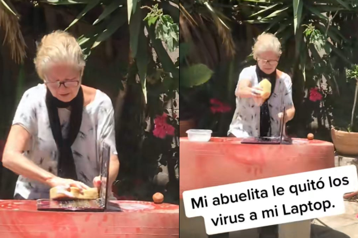 Video | Con agua y jabón, abuelita lava laptop de su nieto para “quitarle los virus”