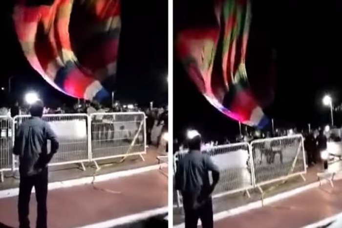 En la grabación se puede observar el pequeño inconveniente que tuvo el personal del evento con la exhibición del globo, pues al tratar de jalarlo con una cuerda, no pudieron con el peso de este, resbalaron y cayeron, haciendo que las vayas metálicas que estaban colocadas para delimitar el espacio entre los asistentes fueran derribadas.