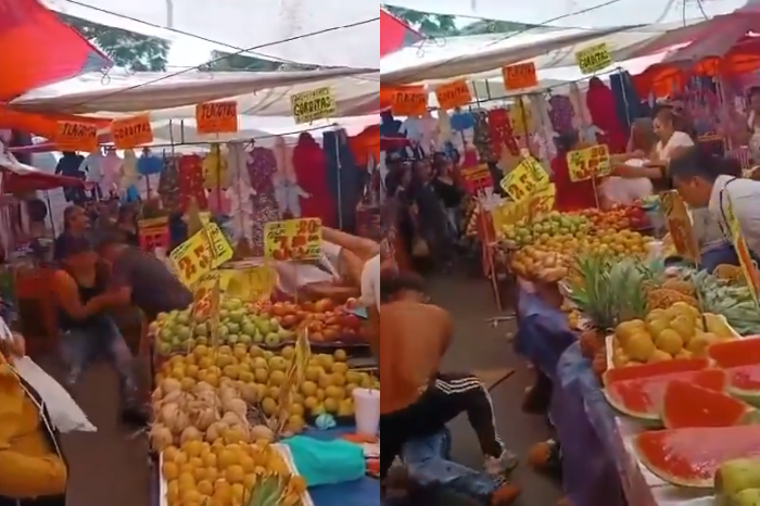Redacción / La Voz de Michoacán Morelia, Michoacán. Este domingo, se registra una riña entre clientes y vendedores en el tianguis de la avenida Pedregal en Morelia. En un video compartido a través de redes sociales, puede observarse a varios hombres golpeándose entre los pasillos del mercado, así como a mujeres jalándose del cabello entre sí. Ante este hecho, varios ciudadanos trataron de separarlos y otros huyeron de la escena para evitar ser agredidos accidentalmente.