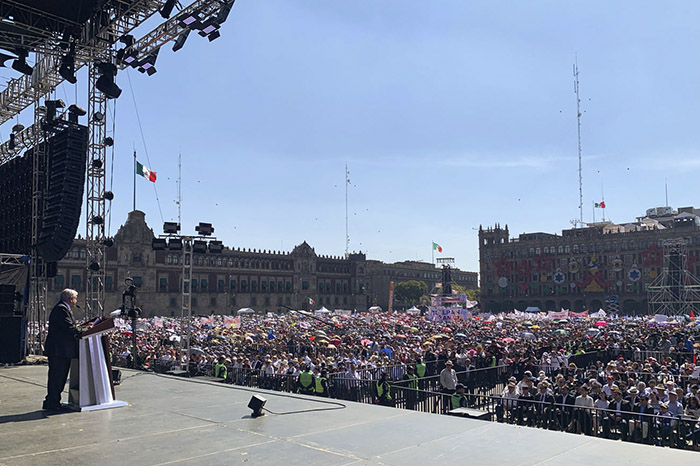 El Universal / La Voz de Michoacán Ciudad de México. El presidente Andrés Manuel López Obrador aceptó que su administración todavía no tiene el crecimiento económico deseado, y presumió que no le han devuelto impuestos a nadie, ni a los patrocinadores de campañas políticas y ahora la distribución de la riqueza no solamente se queda en unas cuantas manos. Al ofrecer su mensaje por el primer año de gobierno, López Obrador dijo que no le han declarado la guerra a nadie, solamente a la corrupción y a la impunidad. "Existe una mayor distribución de la riqueza, no se queda en pocas manos, llega a la mayoría de la gente, cumplimos un año y a diferencia de otros no hemos devuelto impuestos a patrocinadores de campañas políticas, no hemos privatizado bienes públicos ni hemos declarado la guerra a nadie, solo a la corrupción y a la impunidad. Hemos cumplido con todos los compromisos financieros", dijo López Obrador ante un Zócalo lleno. Foto: El Universal. El presidente Andrés Manuel López Obrador celebra su primer año gobierno y en su mensaje al pueblo de México destacó que las reformas legales hechas por su gobierno configuran una nueva constitución. "Amigas y amigos el cambio que estamos realizando está a la vista", así comenzó su discurso ante miles de simpatizantes. Señaló que en el periodo neoliberal se hacían leyes sin considerar el interés público, ahora las reformas a la Constitución tienen el propósito de garantizar el desarrollo del país y el bienestar del pueblo. Foto: El Universal. Aseguró que las principales leyes aprobadas por los legisladores han sido las de combate a la corrupción, austeridad republicana, extinción de dominio para regresar al pueblo lo robado, castigar el fraude electoral y la evasión fiscal con cártel. Un año más para "una nueva patria" El presidente Andrés Manuel López Obrador solicitó un año más para establecer las bases de lo que llamó "una nueva patria". Ante un zócalo lleno, al ofrecer un mensaje por el primer año de Gobierno, el titular del Ejecutivo expresó: "Pienso que un año más; es decir en diciembre, y aquí nos vamos a volver a encontrar, de 2020 ya estarán establecidas las bases para la construcción de una patria nueva, entonces para cualquier circunstancia será prácticamente imposible regresar a la época de oprobio que significó el periodo neoliberal o neo porfirista". Foto: Especial. El presidente señaló que al cumplir dos años de gobierno los conservadores ya no podrán revertir los cambios impulsados por su administración. Antes de concluir, López Obrador recordó que a lo largo de su vida pública siempre ha tenido "un ángel de la guarda que se llama pueblo". Tras agradecer el apoyo y protección de los ciudadanos, el presidente destacó que él solo es un dirigente y que es el pueblo el gran transformador. Foto: Especial. "Yo solo soy un dirigente, el pueblo es el gran señor, el soberano, el gobernante, el que manda y el que transforma". Pide bajar consumo de drogas para resolver inseguridad El presidente Andrés Manuel López Obrador pidió a los mexicanos que le ayuden con una campaña informativa para revelar los daños que causan las drogas y que en un año pueden morir, por lo que dijo "¡felicidad, vida sana, sí; drogas, no!". Al emitir su mensaje por el primer año de Gobierno, López Obrador pronosticó que si se reduce el consumo de drogas en nuestro país se va a resolver el problema de violencia e inseguridad. Foto: Especial. "Me van a ayudar a la campaña porque si reducirnos el consumo de las drogas vamos a poder resolver el grave problema de la inseguridad y la violencia, felicidad vida sana sí, drogas, no", dijo López Obrador. Pidió a los medios y productores para mostrar la otra realidad de las series televisivas sobre narcotráfico y no solamente transmitir lo frívolo, los lujos, y las mujeres y hombres guapos. Foto: Especial.
