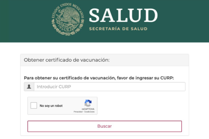 La página para tramitar este certificado es cv.covid.salud.gob.mx, donde te pedirán la CURP para registrarte.
