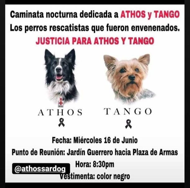Redacción / La Voz de Michoacán Querétaro. Athos “dedicó su vida a servir sin pedir nunca nada a cambio, sus patas marcadas con cicatrices por pisar escombros y aun así continuar en la búsqueda, fueron testigo fiel de su incondicional amor por los humanos”, así definió el equipo de Búsqueda y Rescate Urbano (USAR, por sus siglas en inglés) a su compañero, un bordier collie, a quien “asesinaron”. El can de la Cruz Roja Mexicana en Querétaro contaba con certificación internacional ante la Organización Internacional de Perros de Búsqueda y Rescate IRO. Participó en la búsqueda de personas que quedaron bajo los escombros a causa del terremoto en la Ciudad de México en 2017. Además, ayudó a localizar innumerables personas extraviadas en bosques y desaparecidas en presas, detalló la corporación en una publicación de Facebook. Pero un humano lo asesinó al envenenarlo con salchichas, lamentó USAR, ya que Athos. Irónicamente como siempre es la vida, un humano le quito la vida, lo ASESINO arteramente, sin saber todo lo que nuestro compañero especialista ha hecho por otros seres humanos y lo que podría hacer en el futuro incluso por la misma persona que hoy lo ha matado”. USAR destacó que Athos realizaba su labor con el corazón, que con apenas escuchar la palabra “busca” se lanzaba a lo desconocido sin pensarlo, sin medir el peligro, “porque quería ayudar a un ser humano”. Cuando escuchaba la palabra “BUSCA” se lanzaba a lo desconocido sin pensarlo, sin medir peligro por delante, pero más que verlo como un trabajo, él lo hacía con el corazón, porque quería ayudar a un ser humano, que veía en nuestro compañero una posibilidad de que gracias a su olfato pudiera ser localizado. Sabemos que estas en paz y feliz sin guardar rencores para quien te hizo esto y que tu legado perdurara por siempre en nuestros corazones. Sigue tu nariz hacia la felicidad”. TAMBIÉN APAGARON A TANGO Athos no fue la única pérdida dolorosa para los rescatistas, pues también Tango, un perrito de asistencia familiar, corrió con la misma suerte y al lado del bordier collier. “Tango, un perrito de asistencia que tuvo una historia de vida especial que el destino puso en unas excelentes manos como su nueva familia”, escribió en la red social Protección Civil del municipio de Querétaro. JUSTICIA POR ATHOS Y TANGO La muerte de Athos y Tango provocó la indignación de internautas y otros sectores de la sociedad, como organismo protectores de animales, y exigen justicia. Por la noche de este miércoles, en Querétaro se ha convocado a una caminata nocturna dedicada a los perros envenenados, que partirá del Jardín Guerrero hacia la Plaza de Armas, en punto de las 20:00 horas. Se pide llevar vestimenta color negro.