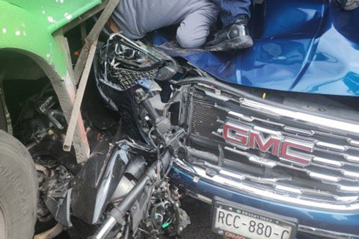 Redacción / La Voz de Michoacán Ciudad de México. Un presunto asaltante murió prensado entre una unidad de transporte público y una camioneta con la que fue impactado luego de que la víctima acelerara para evitar ser asaltada. Todo ocurrió alrededor de las 13:00 horas de este miércoles, en el cruce de Eje 5 Sur y la calzada de La Viga, colonia El Triunfo, alcaldía Iztapalapa. Según el parte oficial, la conductora esperaba la luz vede del semáforo cuando dos sujetos a bordo de una motocicleta se le emparejaron en su ventanilla. El individuo que manejaba la moto detuvo la marcha, de forma que el sujeto que iba de copiloto quedó a la altura de su objetivo; el sospechoso que iba atrás en la motocicleta sacó lo que parecía un arma de fuego y le exigió sus pertenencias a la víctima. “Dame todo lo que traigas, pendeja”, la amenazó el sospechoso. En ese momento la mujer hizo una maniobra (giró el volante a la izquierda) y aceleró, impactándose contra una unidad de transporte público, quedando así prensados la motocicleta y el sujeto que la conducía, mientras que su cómplice cayó al pavimento y pese a que estaba herido logró escapar corriendo, según informaron fuentes capitalinas. La Secretaría de Seguridad Ciudadana (SSC) de la Ciudad de México, detalló que paramédicos que atendieron la emergencia diagnosticaron al hombre sin signos vitales. En una tarjeta informativa, la institución detalló que la conductora de 22 años y Daniel "N", chofer de la unidad de transporte público, de 34 años, fueron presentados ante el agente del Ministerio Público para deslindar responsabilidades. Autoridades de la Ciudad de México señalaron que al término de los peritajes el cuerpo del delincuente fue trasladado al anfiteatro ministerial para realizarle la necropsia de ley y llevar a cabo su identificación. Además, los vehículos, la unidad de transporte público, la camioneta de la marca GMC color azul con placas RCC-880C y la motocicleta color negro con placas NZ200, también fueron trasladados a las instalaciones de la Fiscalía capitalina. Como parte de las diligencias realizadas en el lugar, las autoridades localizaron un arma tipo revolver y un celular en inmediaciones de los vehículos involucrados en el hecho. Las autoridades señalaron que ya realizan la revisión de las cámaras de videovigilancia y privadas de la zona, para ubicar al presunto delincuente que logró escapar.