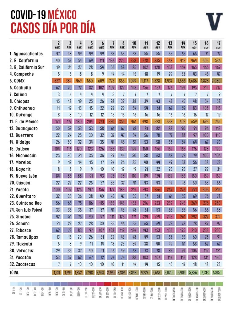 Ciudad de México. Hasta este viernes en México han ocurrido 546 muertes por la enfermedad de COVID-19, así como 6,875 casos positivos al virus del SARS-CoV-2, que causa este padecimiento, informó el director de Epidemiología de la Secretaría de Salud federal (Ssa), José Luis Alomía.