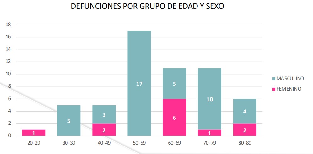 De las personas fallecidas, 44 son hombres, la mayoría de entre 50 y 59 años, y 12 mujeres.